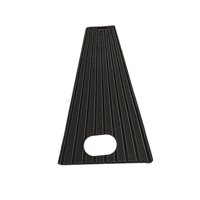 道岔橡胶垫板(减震垫板、绝缘垫板) ,主要作用是缓冲车辆通过路轨时所产生的高速振动和冲击,并对信号系统进行电绝缘。大大提高安全系数,也提高了钢轨及配件的使用年限。